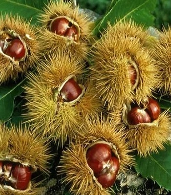 Каштан їстівний. З покупного насіння. Й вчасно спохватився. Вже розпочав проростати. Кільчится, точніше сказати.