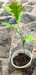 Лісточення на вершині у формі пучків. довгасті, довгавато-зворотні, донизу звужені або серцевуваті, часто з вушками, на вершині тупі або виїмчасті, , великі (40-150 мм завдовжки, 25-70 мм завширшки), з чотирма-сім'ю лопатями, тверді, майже шкірясті, зверху темно-зелені, блискучі, знизу жовтуваті або зелені, з сильно видатними світлими жилками, голі з обох боків, з короткими держаками завдовжки до 10 мм, на зиму завжди опадають. Лопаті тупі, округлі, вирізи між ними неглибокі.