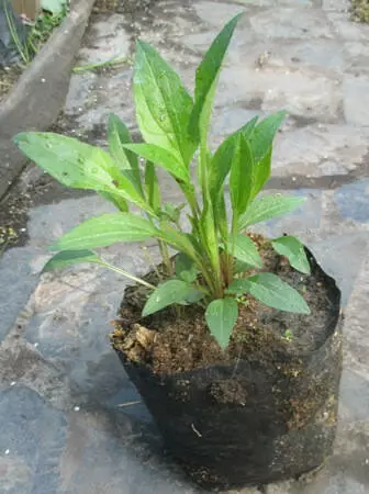 Що про неї пишуть: Є п'ять різновидів трав'янистих рослин під назвою ехінацея. У квітникарі найбільше поширення здобула ехінацея пурпурова — високий багаторічник із прикореневим листям, прямостійким зеленим стебел і заввишки понад метр, з малиновими або пурпуровими плямами. Ехінацея прекрасно росте в центральних районах Європейської Росії, добре цвіте і в південному регіоні, але тільки на нижчому кольороні. Її висаджують у квітниках, великі екземпляри мають добрий вигляд на тлі зелених чагарників, групами на газоні. Крім того, це чудова згусткова культура, у якій висока декоративність поєднується з тривалим (до двох місяців) цвітінням Вирощування ехінацеї з насіння Вирощувати ехінацею з насіння можна двома способами: Посадкою насіння в відкритий ґрунт Вирощуванням через розсаду Розглянемо обидва ці варіанти. Як виростити ехінацею з насіння у відкритому ґрунті Насіння висіває в ґрунт і навесні та восени, але треба обов'язково враховувати, що оболонка в насіння дуже тверда і для її розм'якшення потрібен досить тривалий час. Саме за цим весняний посів не завжди буває вдалим. Перші паростки можуть з'явитися й через два тижні, і через шість. Багато кольоріводів перестають поливати посадки ехінацеї через 3 — 4 тижні вирішили, що насіння вже не зійдуть. Адже ехінацея сама нам підказує, коли її краще садити. Хто вирощує ехінацею не один рік, той добре знає, як легко вона розмножується самосівом. Насіння обсипане восени з квітів дають навесні рясні виходи. Тому й садити їх у ґрунт набагато простіше та доцільніше пізно восени, тоді навесні отримаєте численні виходи. Але в будь-якому разі в першу літо рослина сформує лише розетку з листя, а зацвіте тільки наступного року. Щоб милуватися квітами ехінацеї на рік посадки, доведеться вирощувати її через розсаду. Відео про посадку ехінацеї пізньої осені: Вирощування ехінацеї через розсаду Підготовка ґрунту. Простіше всього купити готовий ґрунт у квітковому магазині, але оскільки ехінацея рослина не вибаглива, можна приготувати її й самим. Жодного особливого складу ґрунту не буде потрібно, головне, щоб земля вийшла легка, вологомістка та повітропроникна. А продезінфікувати ґрунт буде зовсім не зайвою, причому не тільки власного виробництва, але й магазинну. Для цього пакет із ґрунтом потримайте на морозі днів десять або пролийте його розчином марганцовки. Сроки посадки. Насіння ехінацеї починаєячий з середини лютого. Вирощуємо ехінацею з насіння. Підготовка насіння. Оскільки оболонка в насіння тверда, бажано замочити їх у розчині, що стимулює проростання або хоча б у звичайній воді. Для цього загорніть насіння в серветку, покладіть на блюдце та регулярно цю серветку зволожуйте. Багато хто зараз користується для цього туалетним папером, папір теж для цього годиться, головне, щоб насіння весь час було вологим і до них доступ повітря. Посев семян. Коли насіння почне проклеюватися — час розпочинати посів. На жаль, дружного проростання найімовірніше не буде, тому починайте посадку, коли проклюнеться хоча б частина насіння. Для вирощування розсади ехінацеї використовують дерев'яні ящики, всілякі плошки або стаканчики. У землі зробіть борозенки або заглиблення завглибшки 5-10 мм, розкладіть у них насіння й присипте тонким шаром землі або піску. Зволожте ґрунт із пульверизатора, накрийте ящик 