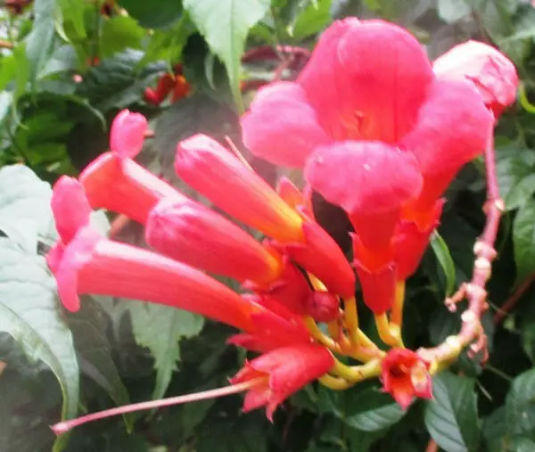 Кампсіс, що вкорінюється, Фламенко — ліана, що енергійно росте, вертикально підіймається, з яскраво-червоними квітками. Campsis radicans Flamenco — це рослина-альпініст, що приваблює диких тварин (з-за великої кількості квіткового соку), бджіл, метеликів і птахів, яка стане прекрасним доповненням до саду.Оплата та доставка