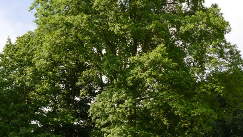 заввишки до 30 метрів. коричнева, покрита глибокими борозенками, відшаровується невеликими пластинками. жовті (одна з відмітних ознак вигляду). завдовжки 15-25 см, непарноперисті, з 5-9 вузько-яйцеподібними або ланцетоподібними .