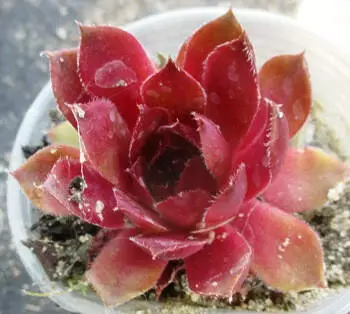 Молодило Бордове. - дуже декоративна і невибаглива рослина, яка називається ще "кам'яна троянда". Соковитий багаторічник, бразующий килимок з великих вічнозелених розеток. Листя м'ясисті, бордово-червоні, колір змінюється в залежності від сезону, стає більш насиченим при низьких температурах. Материнська розетка поширюється у всіх напрямках, утворюючи численні дочірні розетки. Влітку материнська розетка цвіте рожевими квітами і гине, а її місце займають дочірні відростки. Молодило - це рослина, яка добре розростається в сторони.