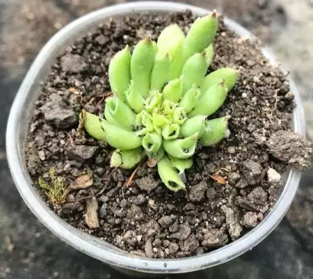 Що прочитав в інтернеті на цю тем у:діаметр дорослої розетки 8-12 см, листочки скручені в трубочку