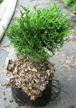 карликовий сорт туї західної, кулястої форми. Хвоя темно-зеленого кольору.Розмір: до 10 років виростає до 0,4 м у діаметрі.