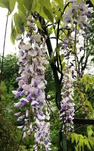 Wisteria sinensis (гліцинія китайська): Велика, з обвушеним листям, яке згодом стає гладким.